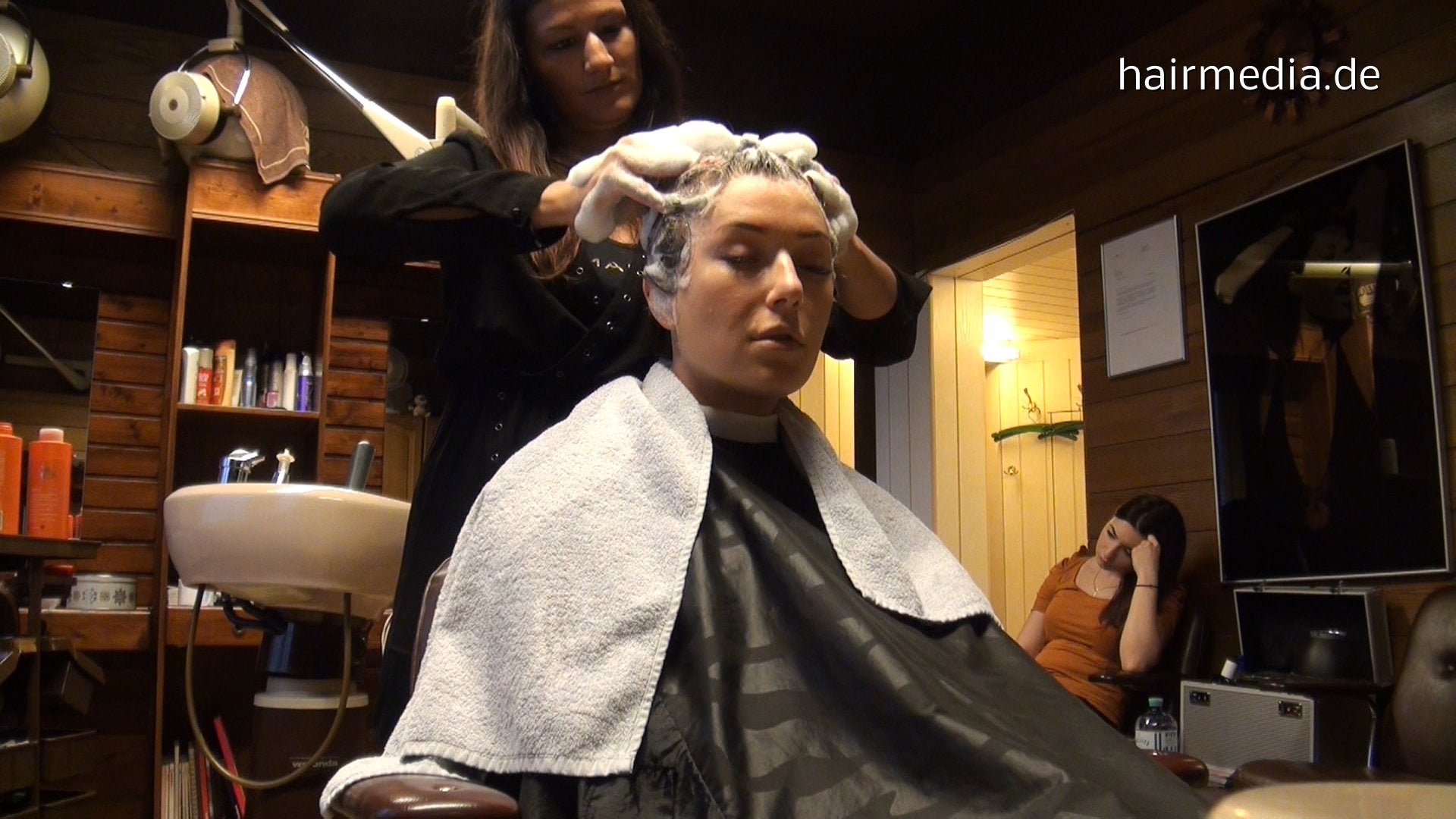 361 KristinaB 2 upright hairwash by VanessaDG in shampoocape and towel