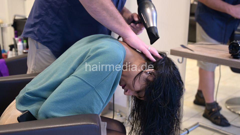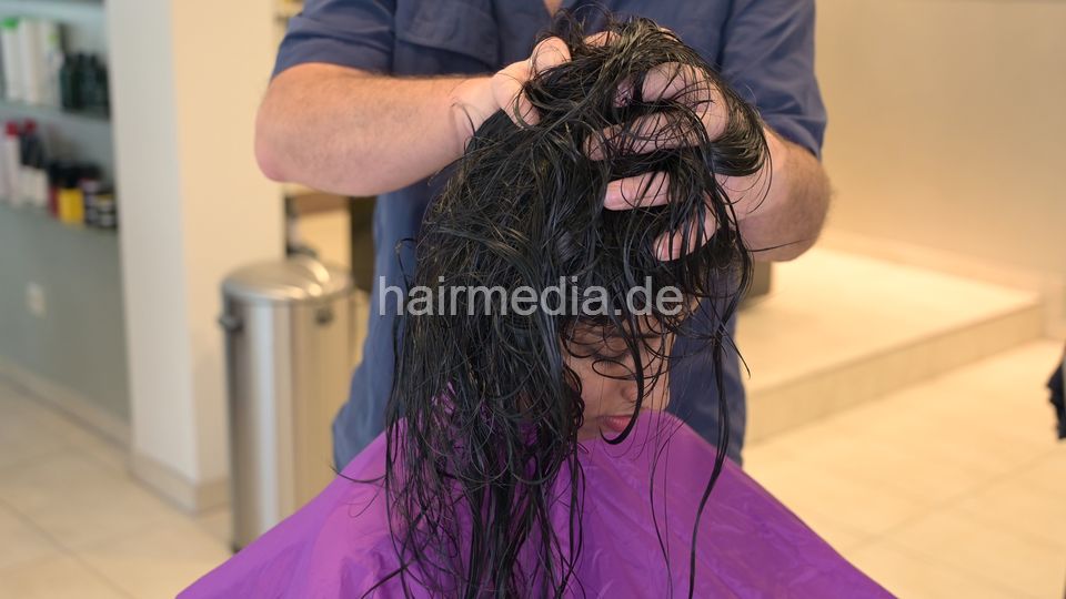 397 Indian hair model ASMR extrem long salon shampooing by barber