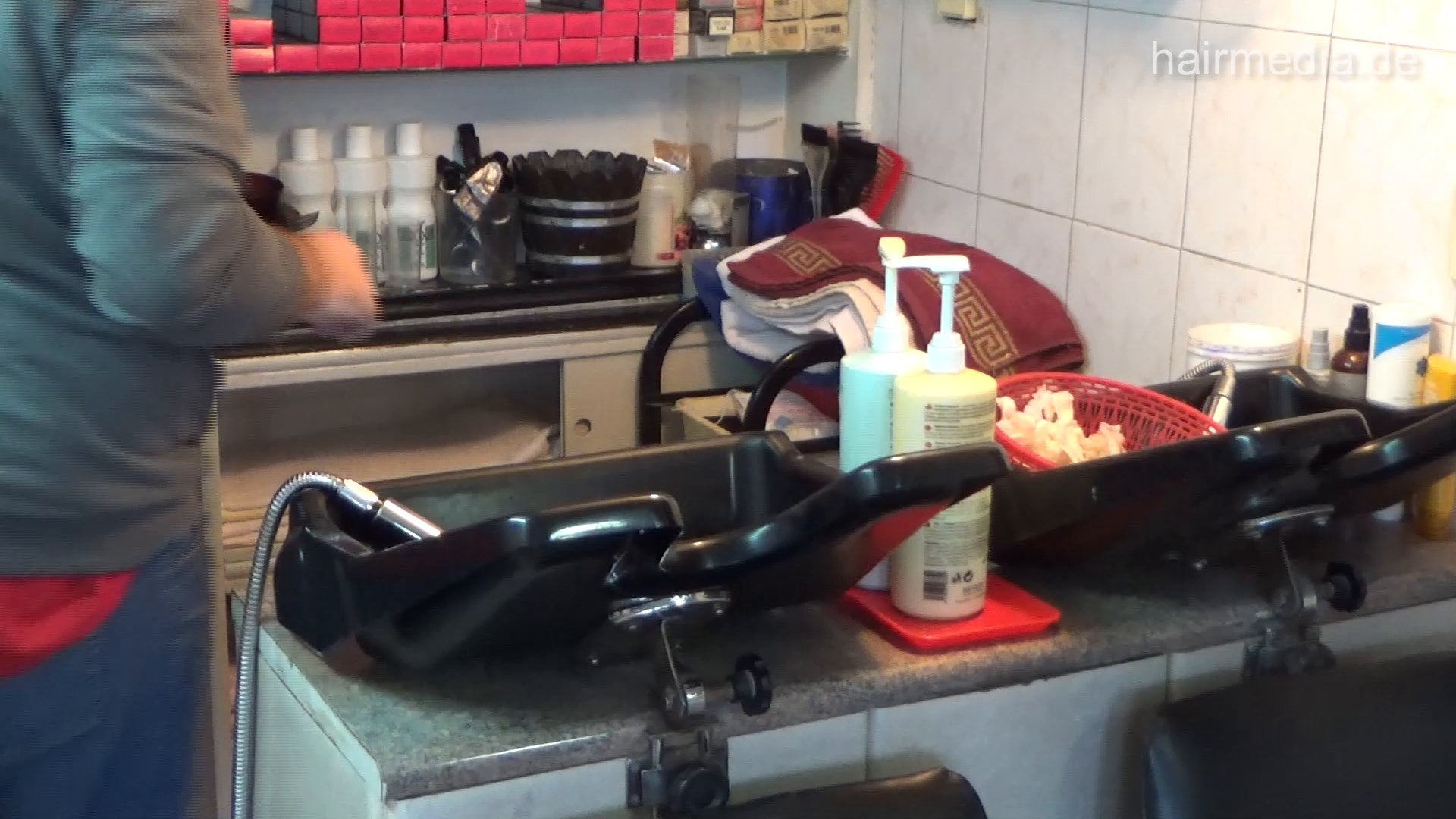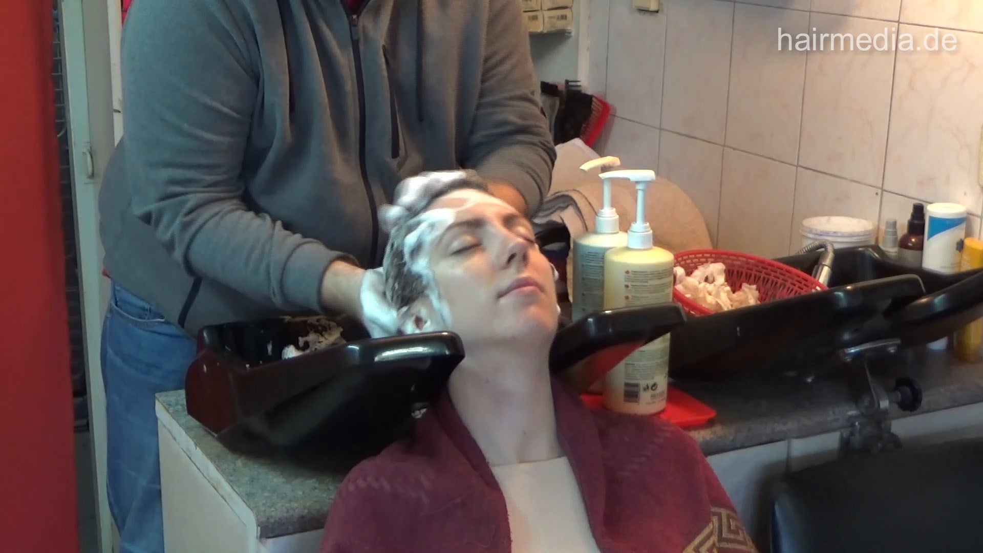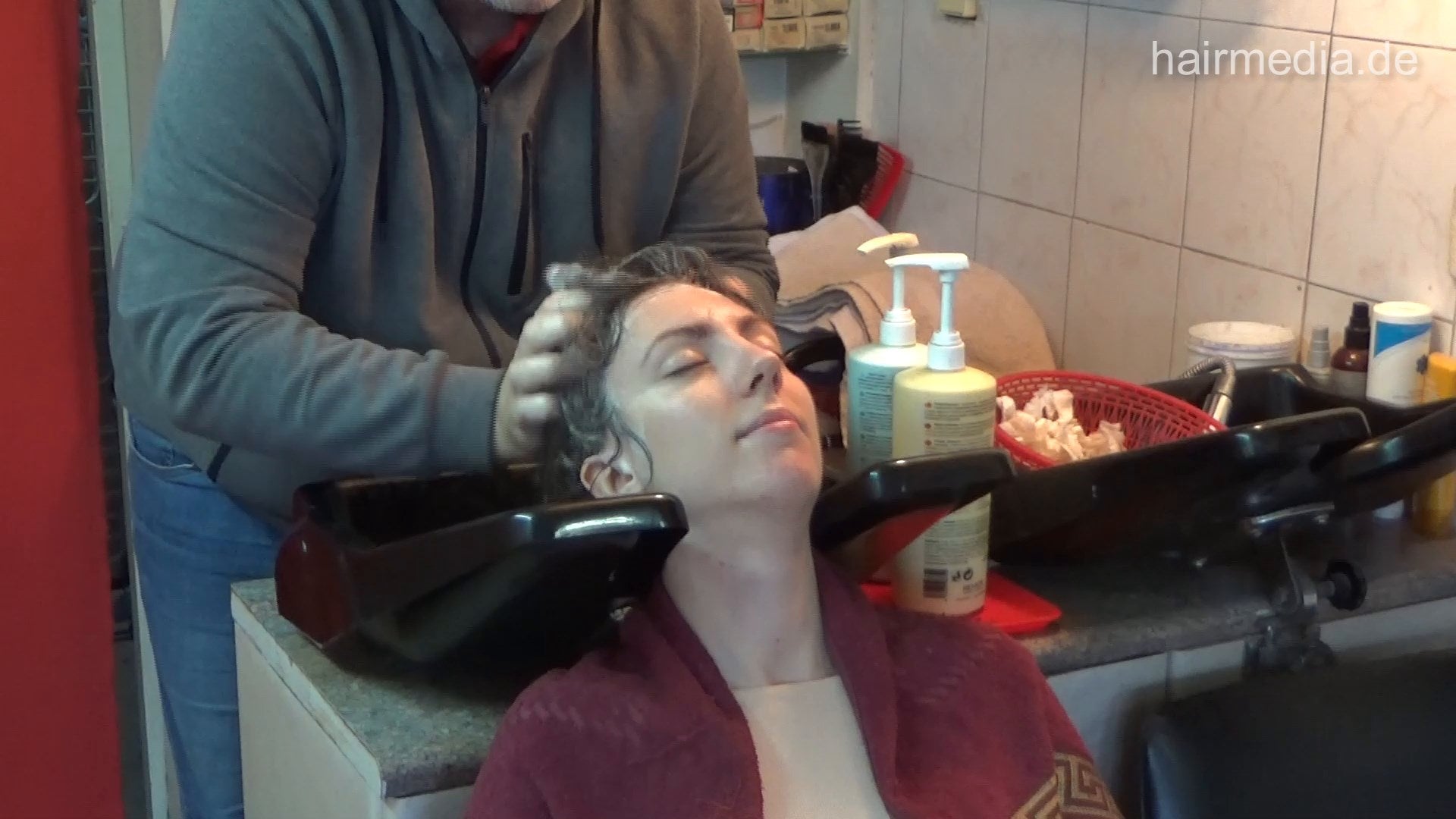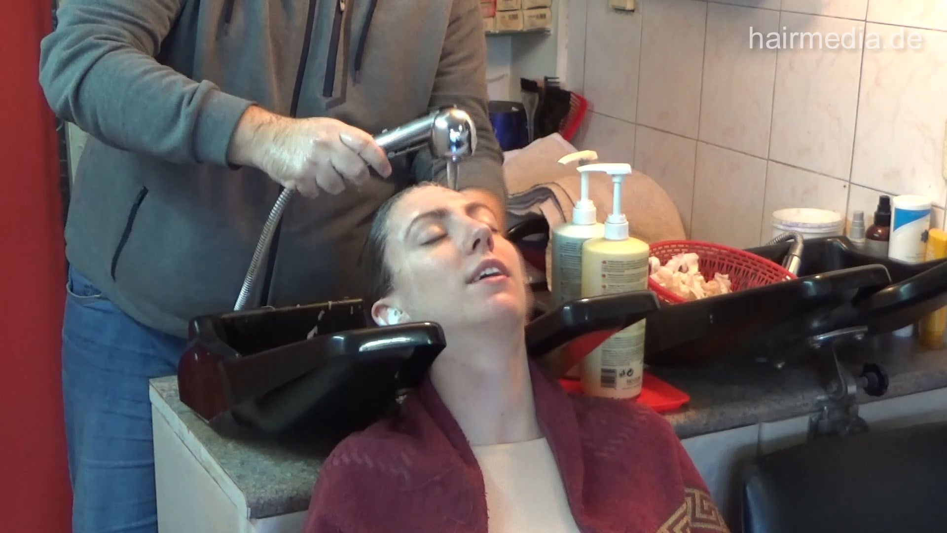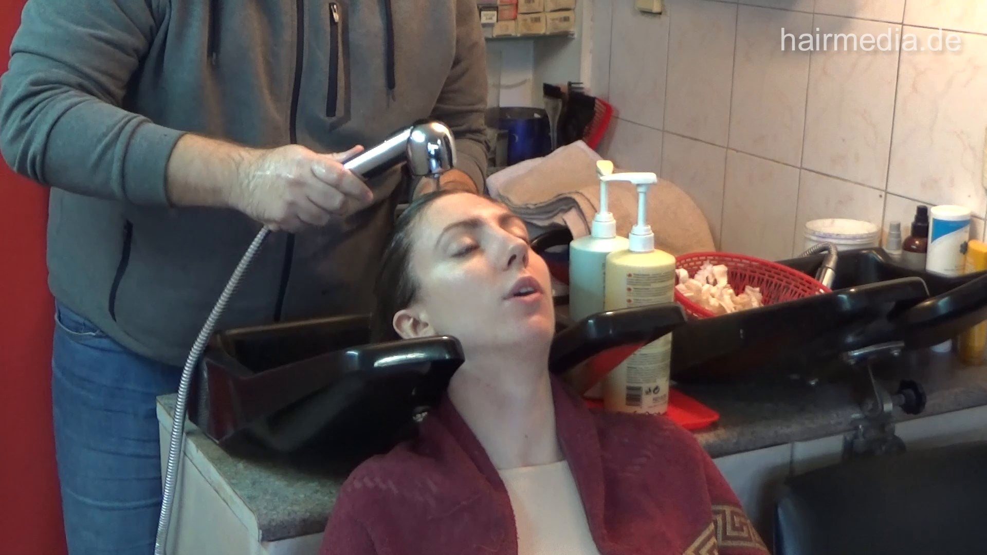 6207 Jana 1 backward salon shampooing hair and ear by barber
