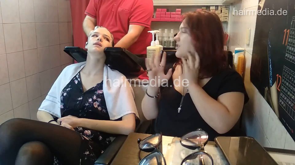 6207 Mia cam2 backward salon shampooing hair by barber black nylons, skirt and boots