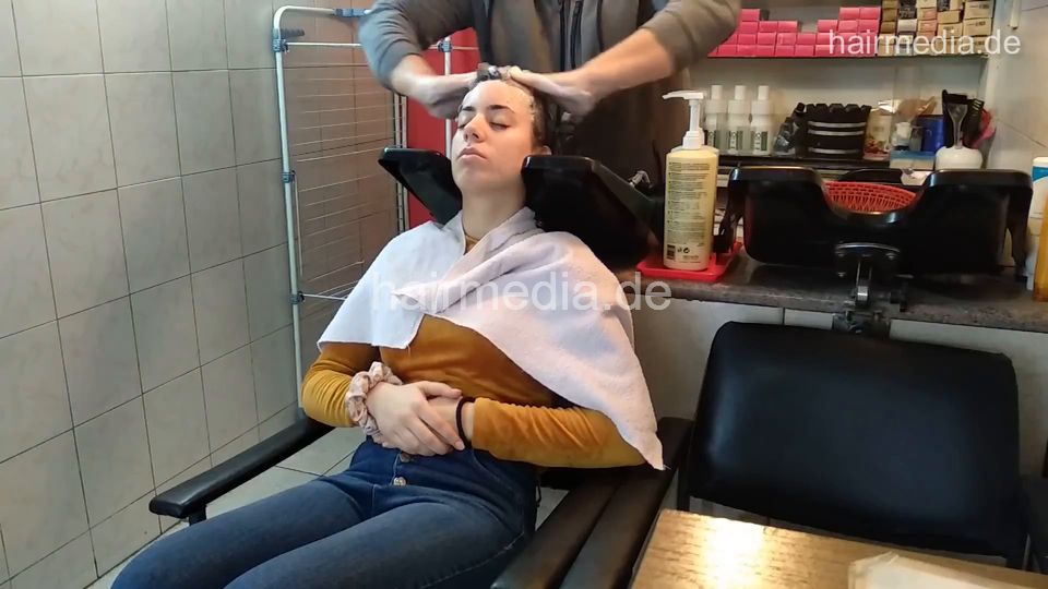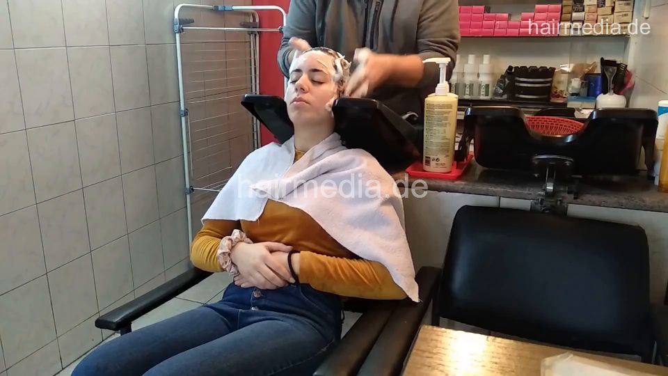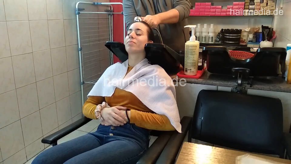6207 Nina 3 backward salon shampooing hair and ear by barber cam 2 facecam