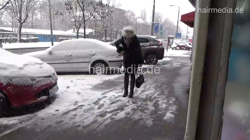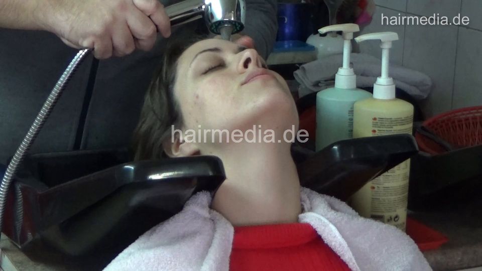 6207 VanjaA in boots backward salon shampooing hair and ear by barber