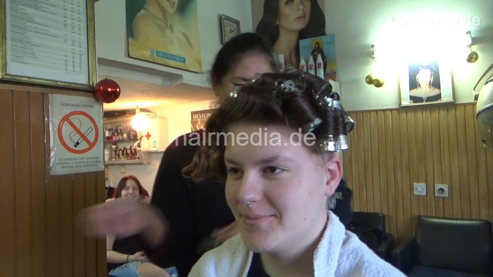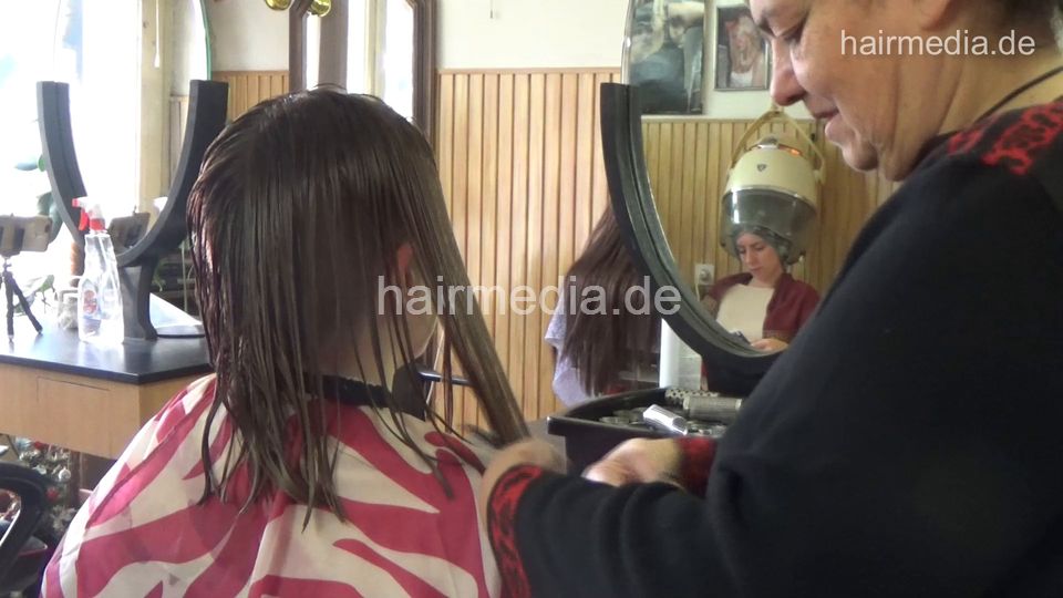 6207 young girls Masha 2 haircut undercut and wet set by mature barberette