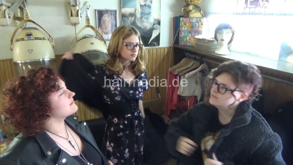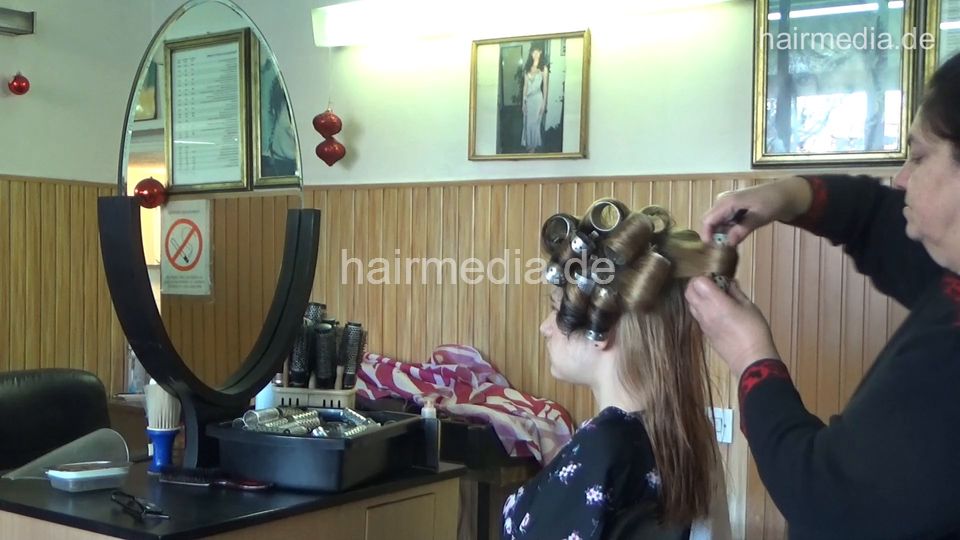 6207 young girls Mia 2 first wet set in large metal rollers by mature barberette