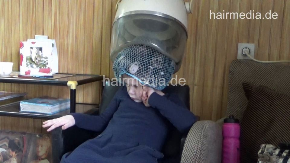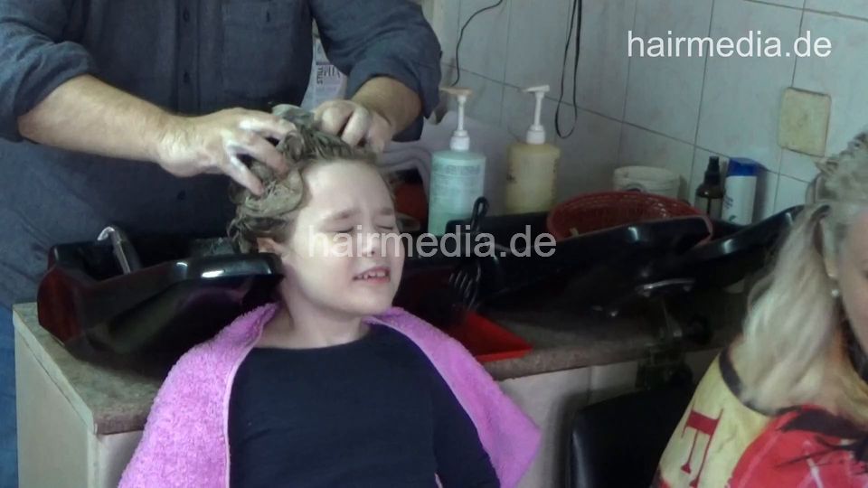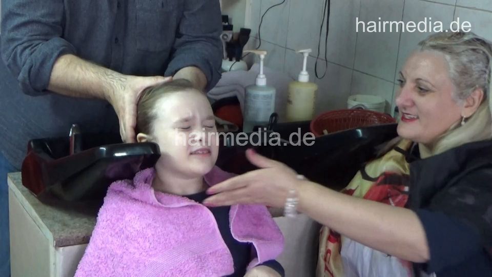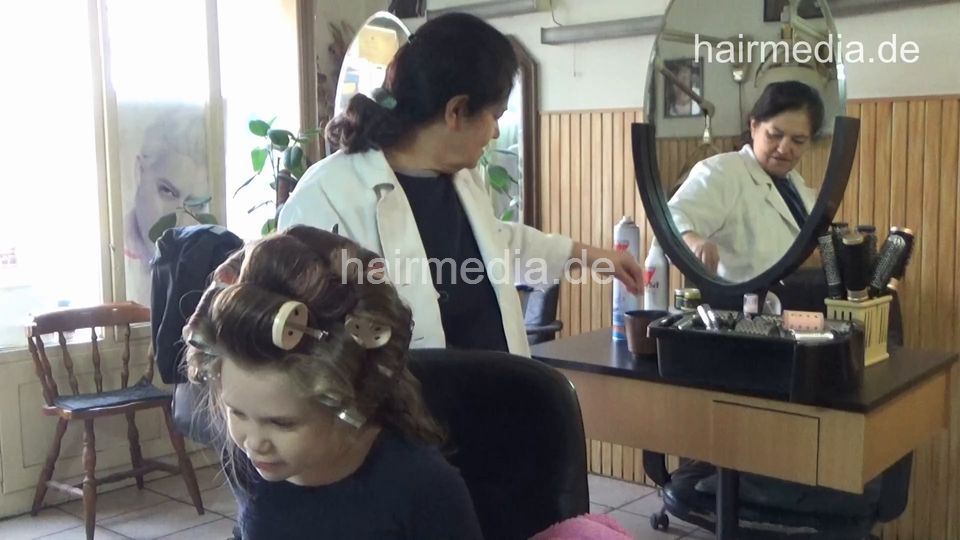 6217 Mother SnezanaD and teen daughter: Daughter DunjaD shampoo by barber and cut and wetset