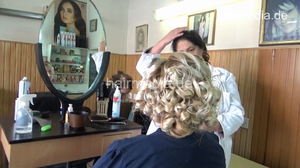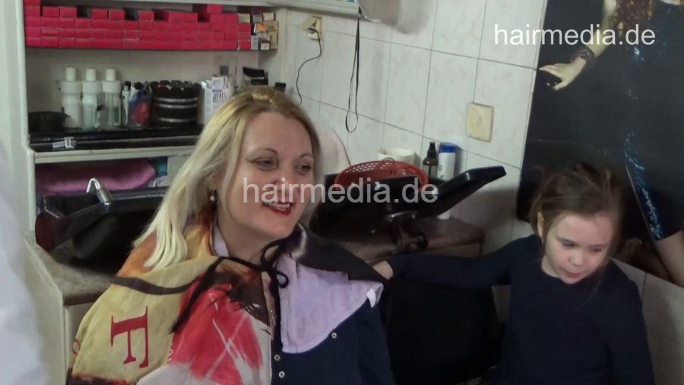 6217 Mother SnezanaD and teen daughter: Mom SnezandD shampoo by barber and cut and wetset