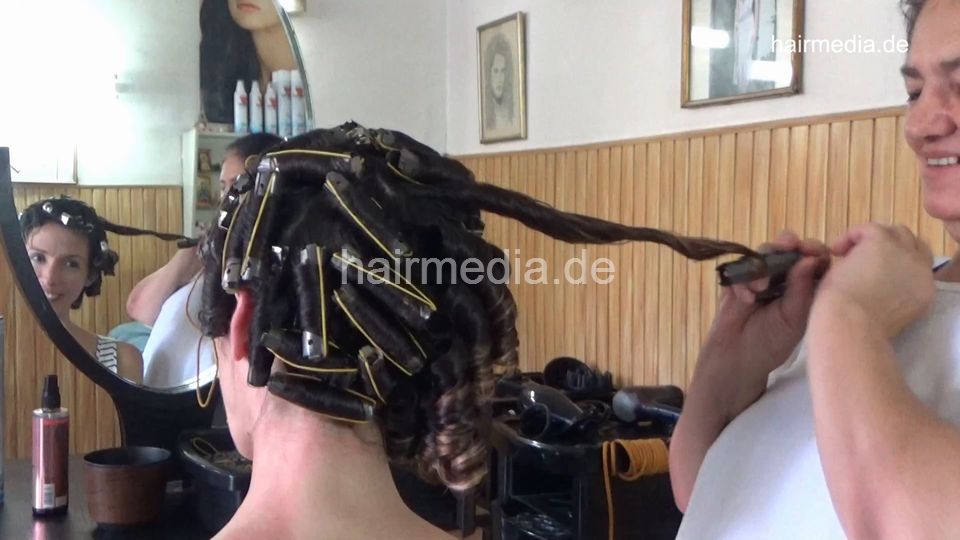 6219 Four girls: Dunja shampoo and metal rollers ear protected wetset