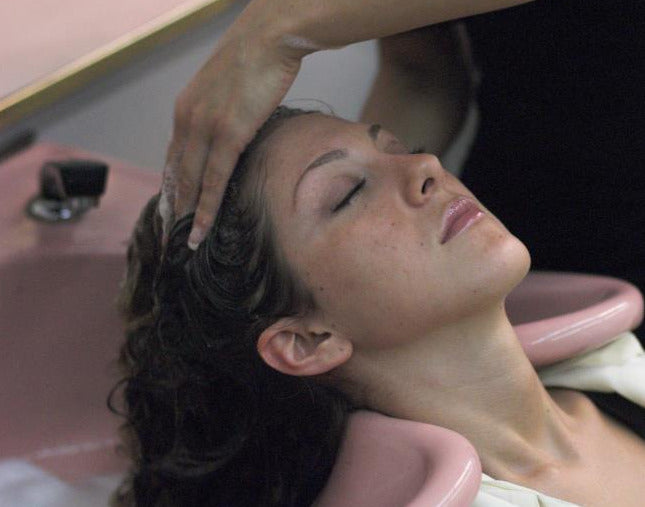 653 AlisaF in Kimono pink bowl shampooing backward by Marinela
