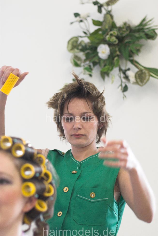 673 Yasmine in jeans 2 Kultsalon set by LauraB in green apron