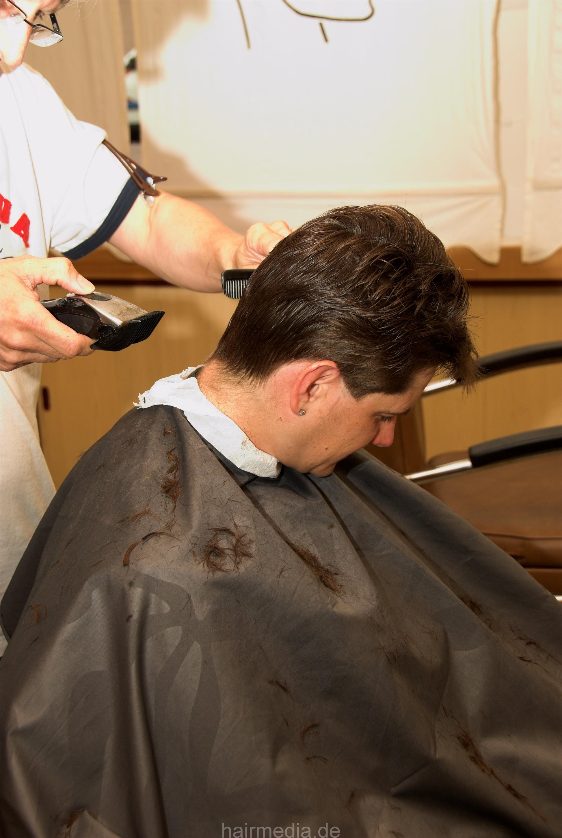 8071 Dina 2 cut and buzz by old barber in barbershop between the men