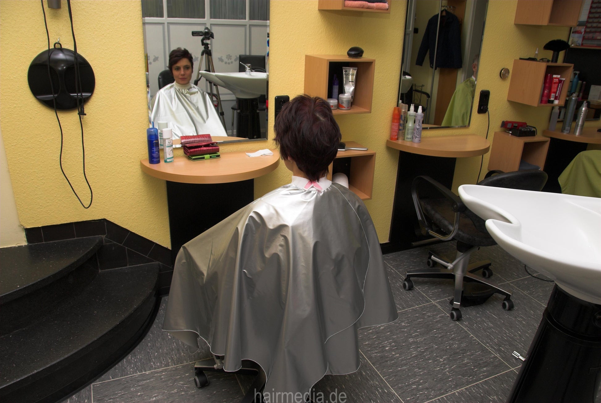 8135 Lucie 1 backward shampoo by barber in shiny pvc shampoocape