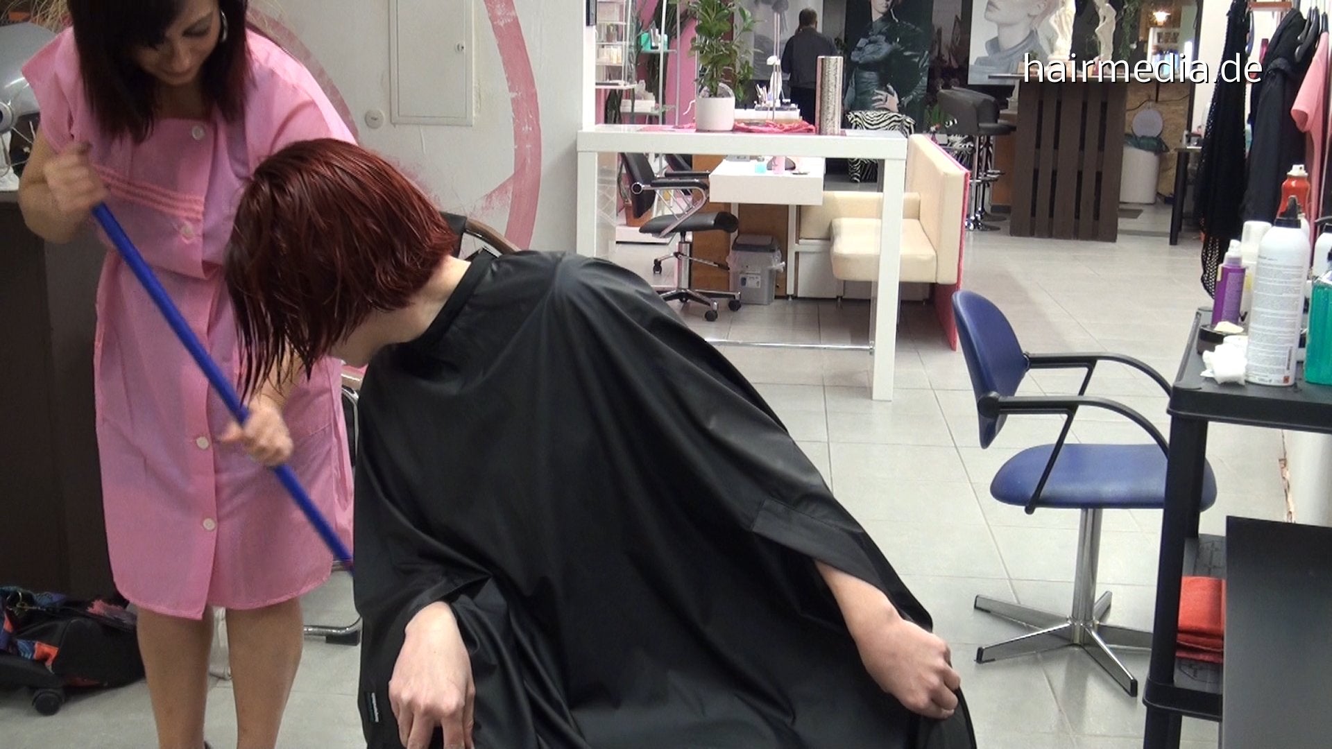 8135 Mona by Talya Nylon 2 shorthair cut shorter in pink dederon apron