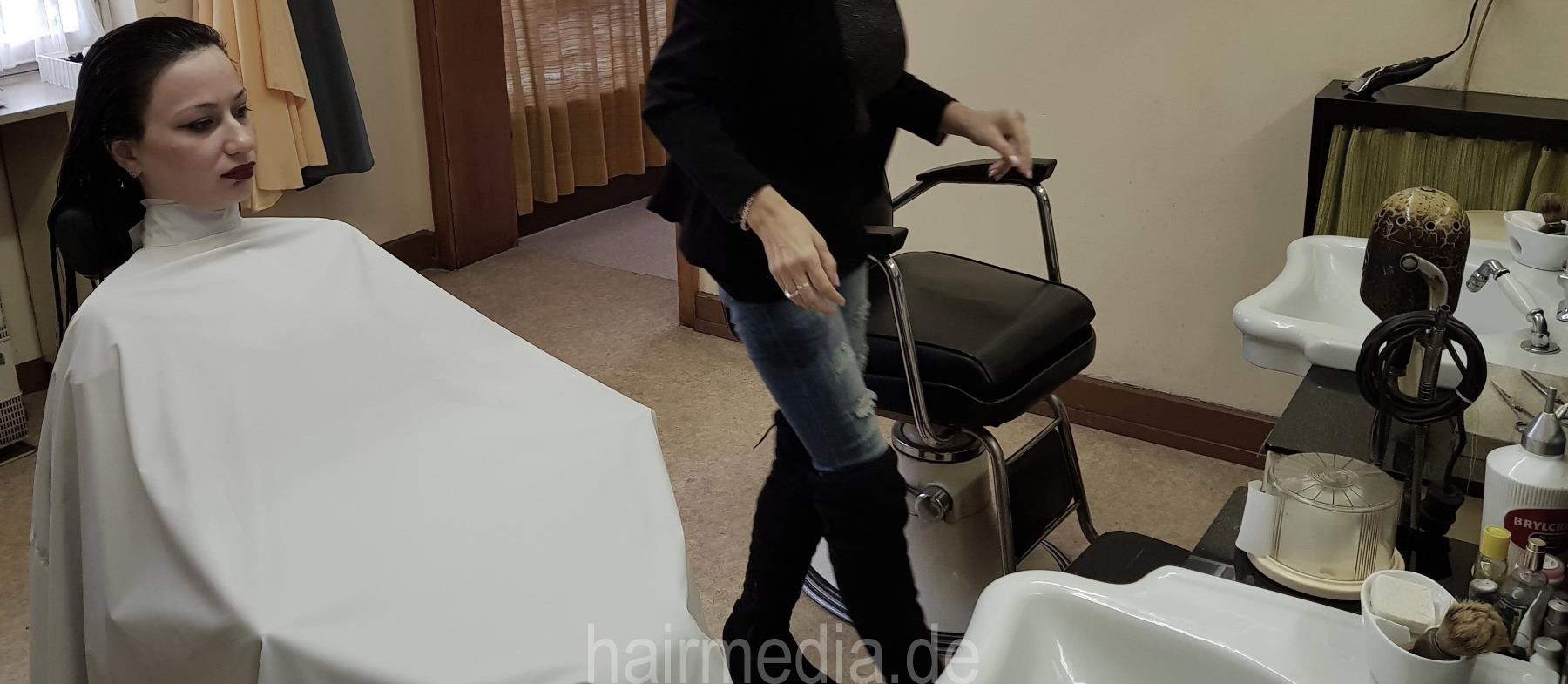 8151 Katia by Dzaklina 3 haircut barberette in rollers large white barbercape