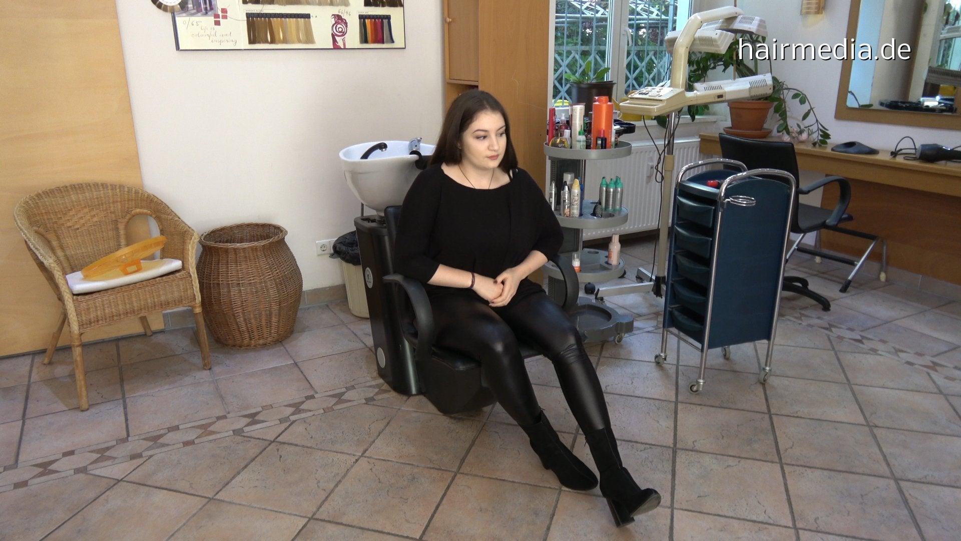 9079 Imany 1 backward shampoo in leather pants by Veronique