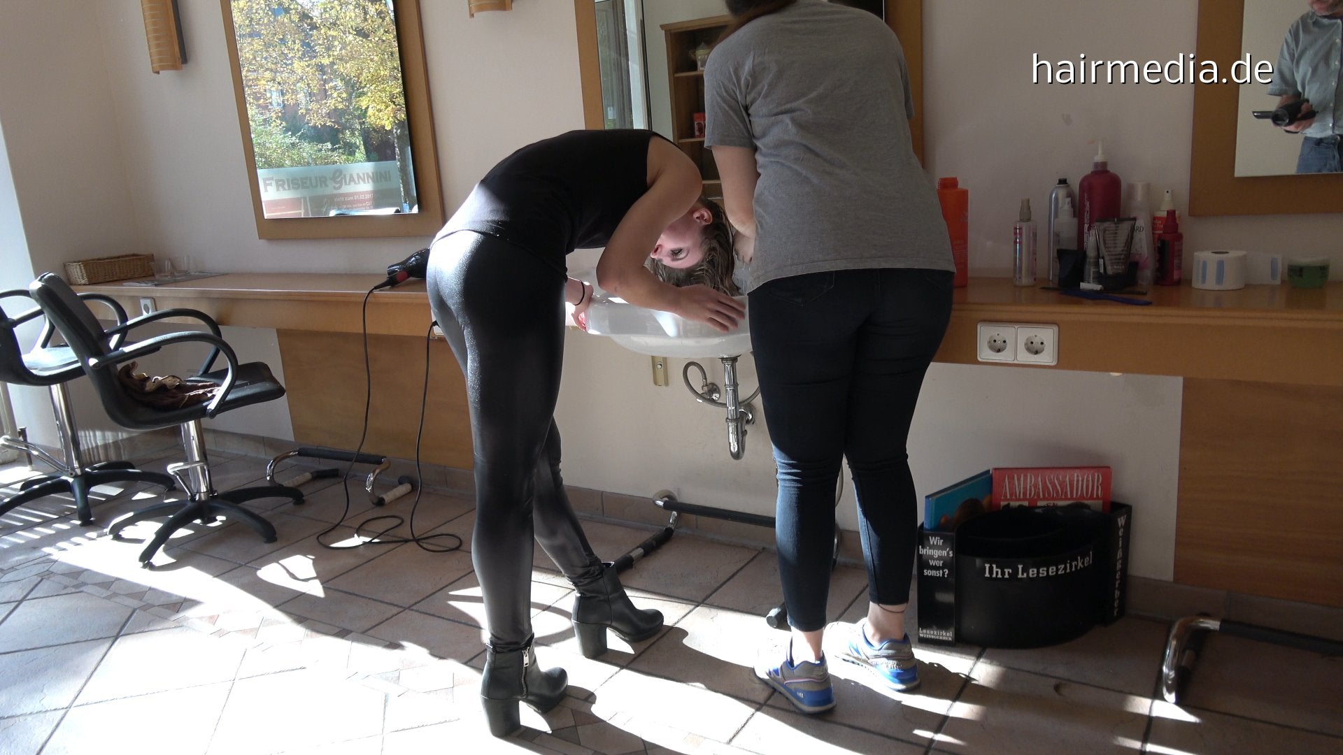 9079 Veronique 2 forward shampoo hairwash in leather pants by Imany
