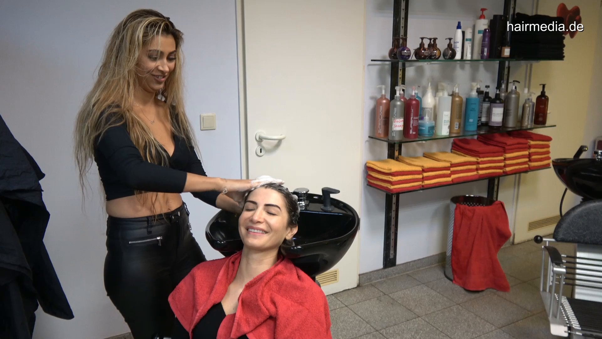 9092 Zoya wet XXL hair shampooing Marinela 2 backward in leatherpants