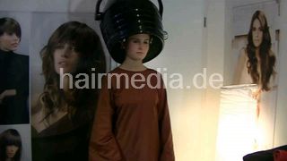 Lange blonde Haare auf Dauerwellenwickler, Gesichtsmaske, Make Up unter der Haube, dazu etliche Hauben und Capewechsel, ich denke mal mit fast allen die sie hatten. Mehrfach auch andere Darstellerinnen zu sehen.