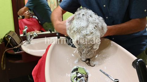 Hafida blonde thick hair backward shampoo mature lady by barber