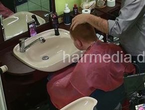 Mathias controlled by Nico mulitcaping, forward shampooings, scalp tonic, buzz, backward, dryer - birdsview