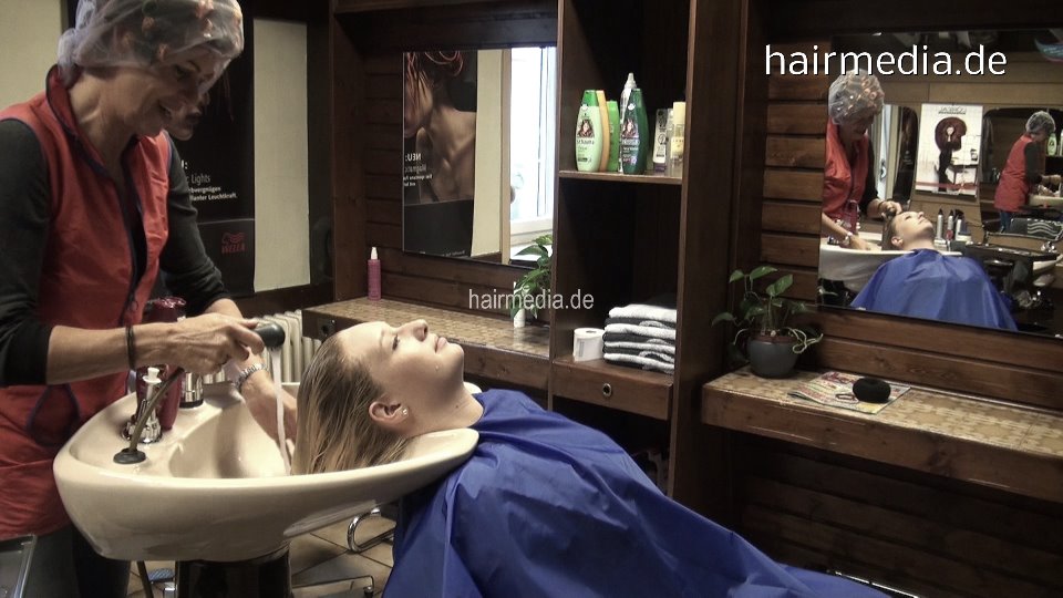 1007 3 Nadine by KerstinHR in rollers and hairnet backward shampoo hairwash