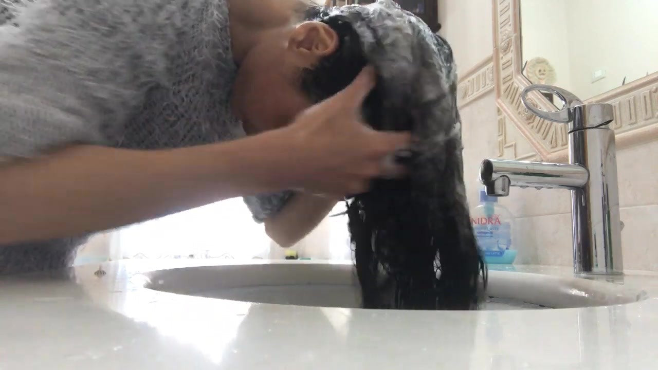 1147 self shampooing ASMR relax sound in pullover in bathroom