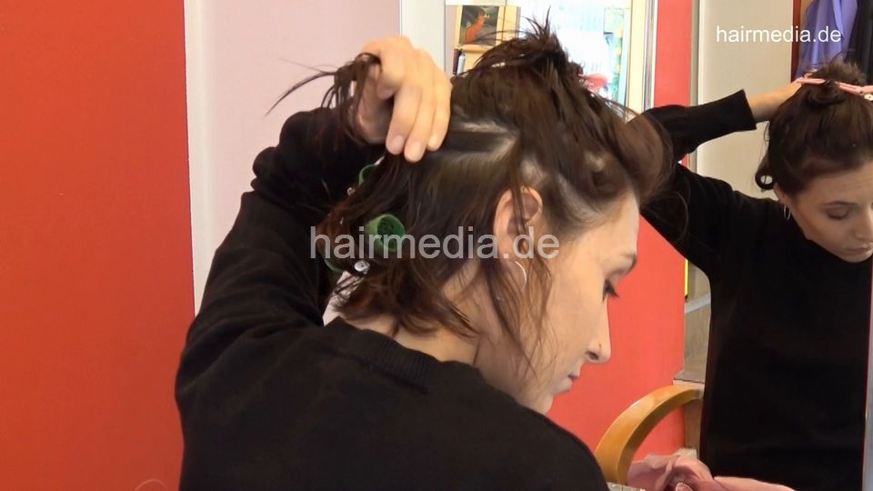 1180 MichelleB by barber 3 self wet set in salon and ASMR hood dryer scene