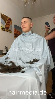 Unleash your inner risk-taker with the Luca buzzcut headshave video! Watch as hair falls on a heavy PVC cape as the hobbybarber at home gives a bold haircut. Get inspired to take on new challenges and adventures with this daring experience!