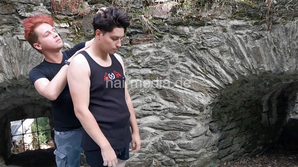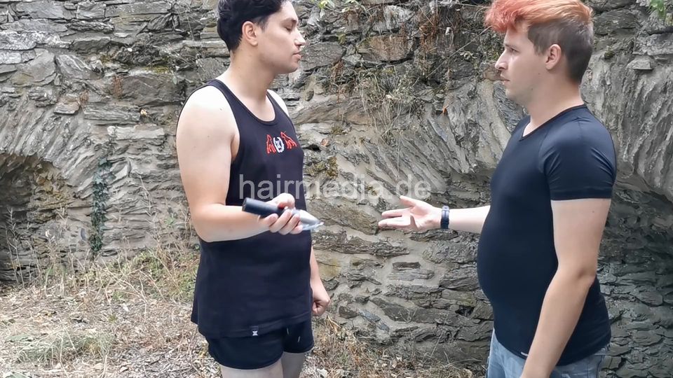 2 friends lost a bet, headshaving each other