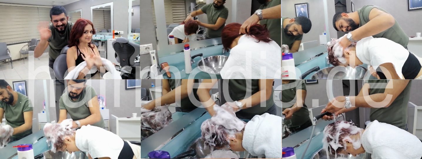 533 Erek Kuaförü strong redhead forward wash by barber in Turkey