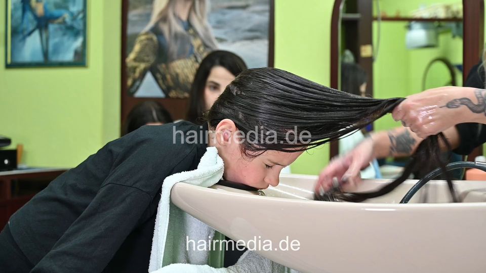 544 Paulina and Mashid session younger daughter 2nd run hair kneeling forward wash and blow