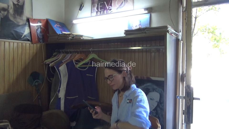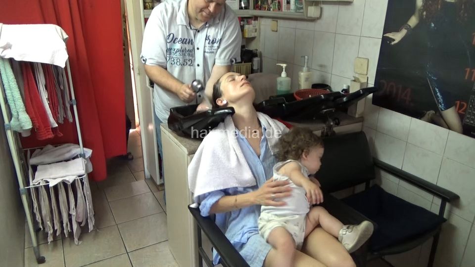6229 KathrinP mother shampoo by barber, haircut, blowdry mom
