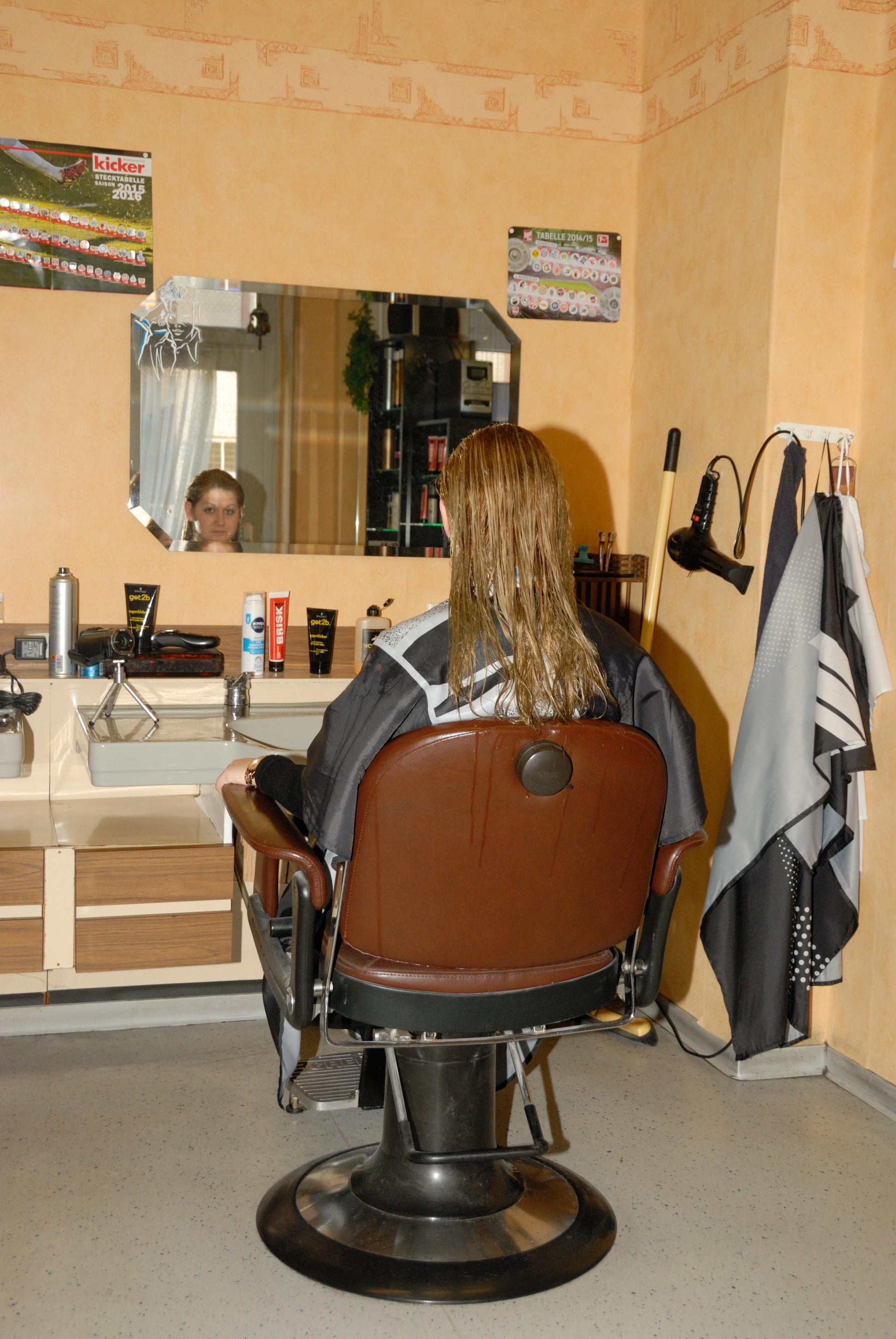 8063 NadineD Hanau 2 cut and blow in barber shop men watching