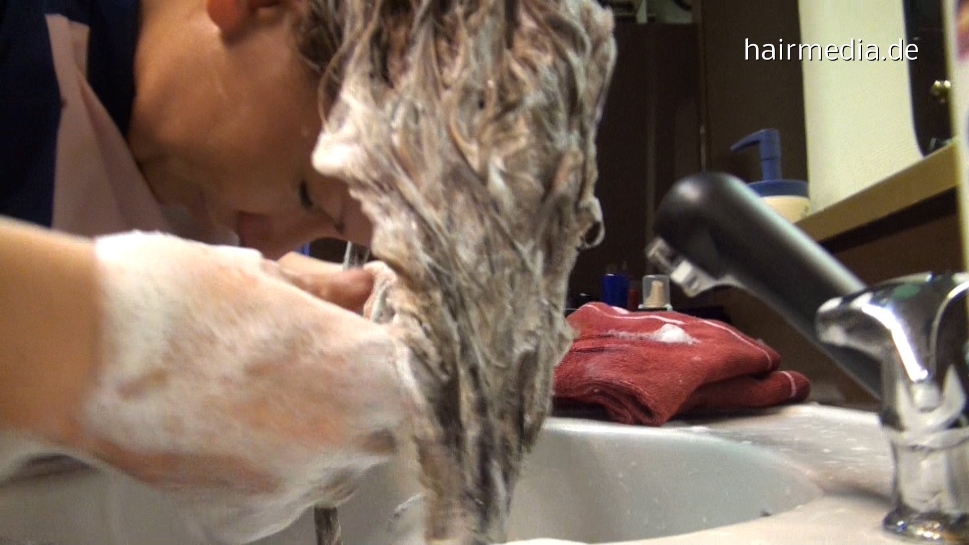 8131 1 Agata barberette in RSK nylon apron forced to self forward hairwash TRAILER