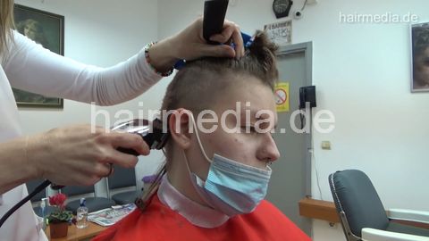 8401 Masha 1 smoking outdoor and headshave in barbershop by female barber JelenaB
