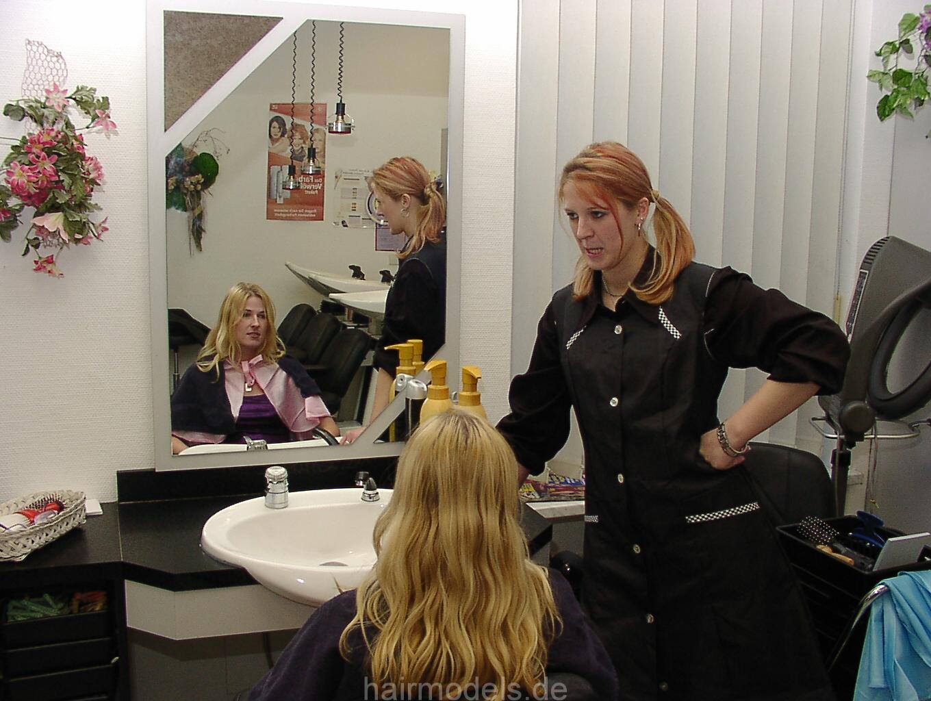 3 girlfriends and 1 barberette FranziskaL, just forward manner shampooing and short blow dry scene