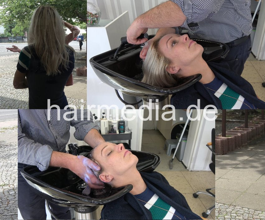 Get ready for a hair-raising experience with our Salon Owner Shampoo video. (Get it? The owner was the one getting shampooed!) This blonde, long-haired shampoo will have you feeling like a professional stylist, even if you're the one getting your hair done!