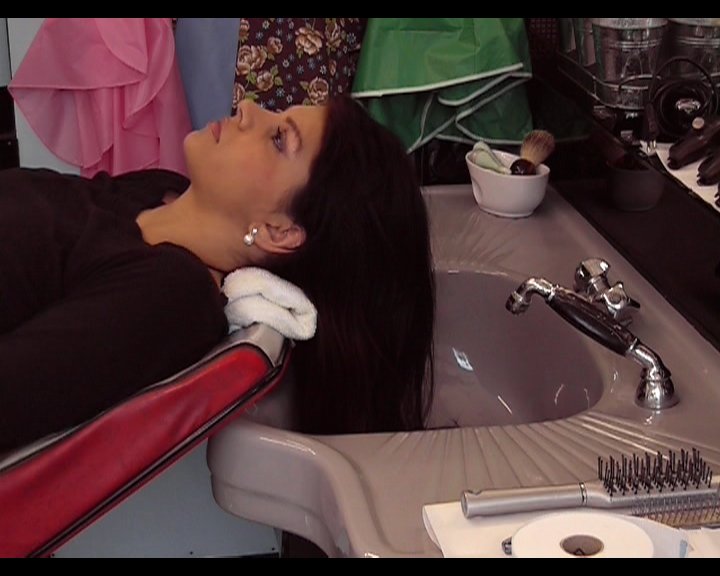 1015 Agnieszka 2 backward by barber on barberchair in forward shampoo hairwash bowl