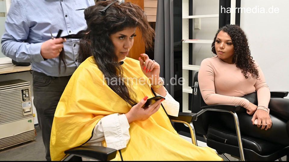 1042 Nasrin and Juanita 4 drycut by barber in barberchair