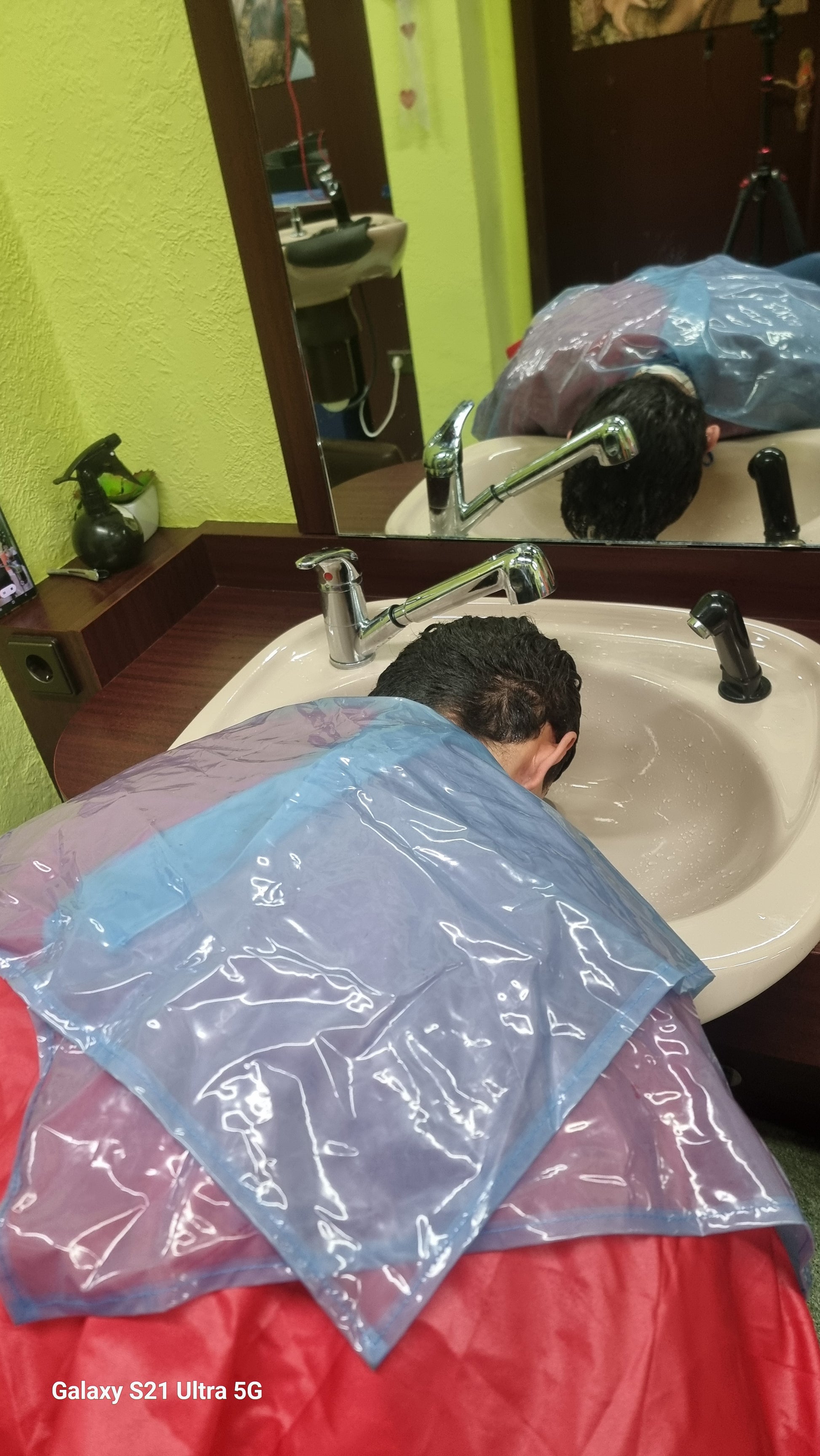 4x shampooing forward, extrem Alpecin scalpmassage for both, done by barber