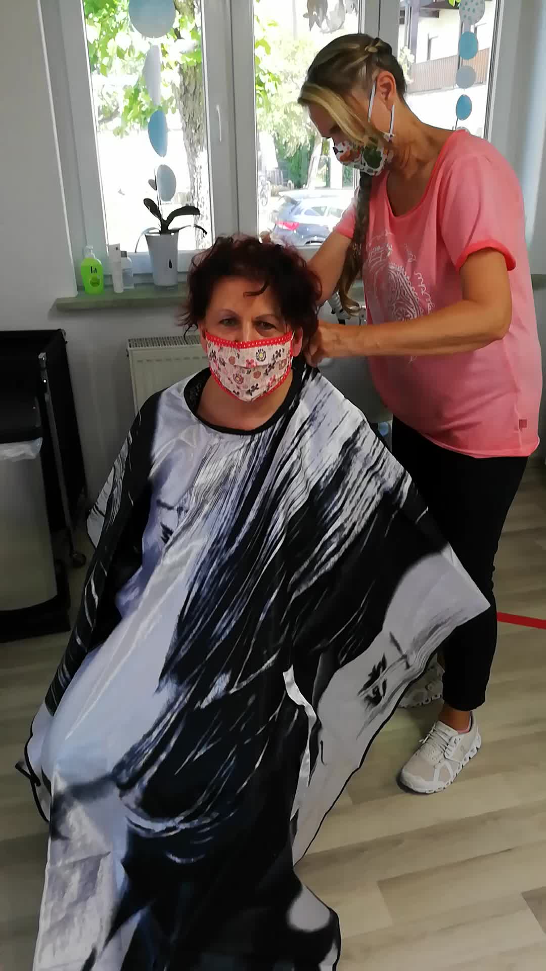 1076 PetraH at hairdresser shampooing in facemask and gloves