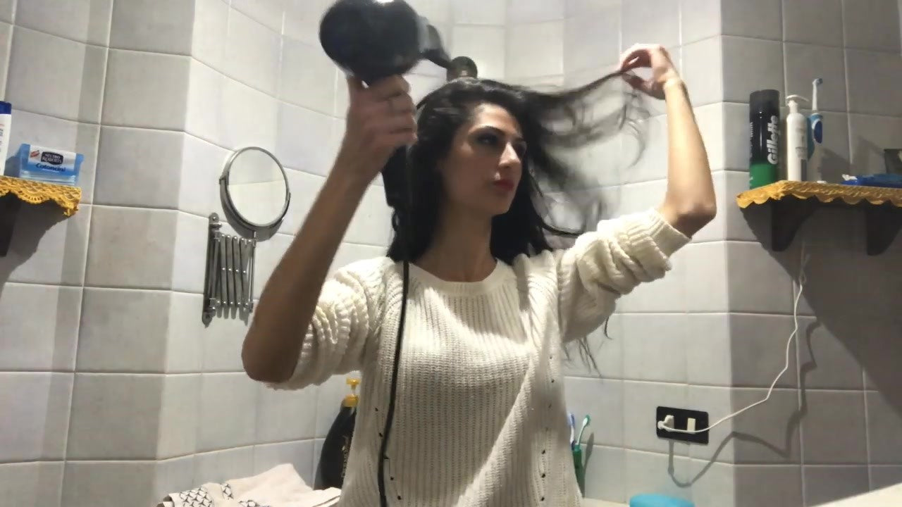 1147 hair dryer ASMR relax sound self blow in pullover in bathroom