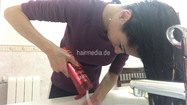 1147 self shampooing ASMR relax sound purple shirt in bathroom