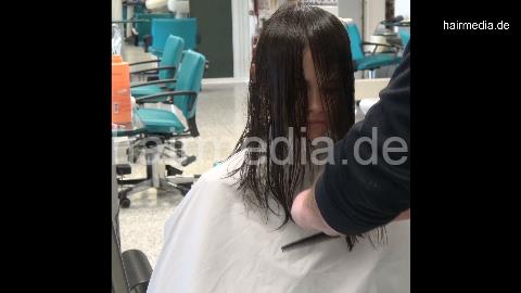 Vanessa did visit a Spezialsalon for special german haircompression, called "Haarverdichtung". For a dry haircut, but due to corona the barber did shampoo her 46 min !!! Then she got a very long (not short) 29 min haircut trim without any results and without hair compression.