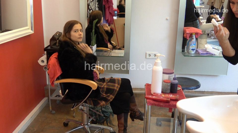 1169 13 Agnes waiting watching Zoya getting a shampoo by Tanja in leatherpants