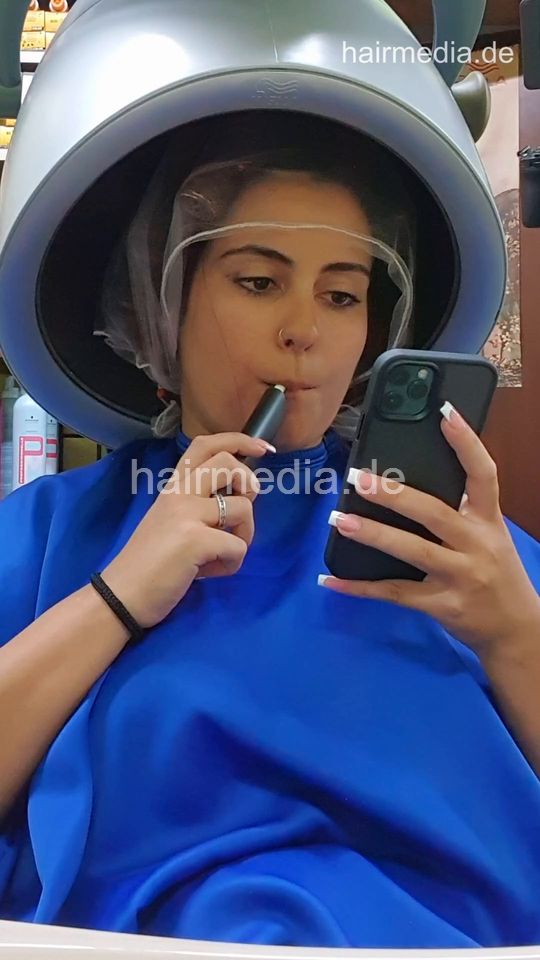 1227 LuisaB salonbarber session 4 smoking under the dryer - vertical video