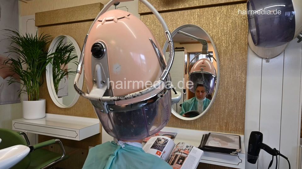 Transport yourself back in time with this vintage metal hood dryer video! Perfect for salon- and hair enthusiasts, experience the luxury and comfort of a shampoo and set while sitting under the warm embrace of the hood dryer. No more tedious air drying, just beautiful vintage curls!