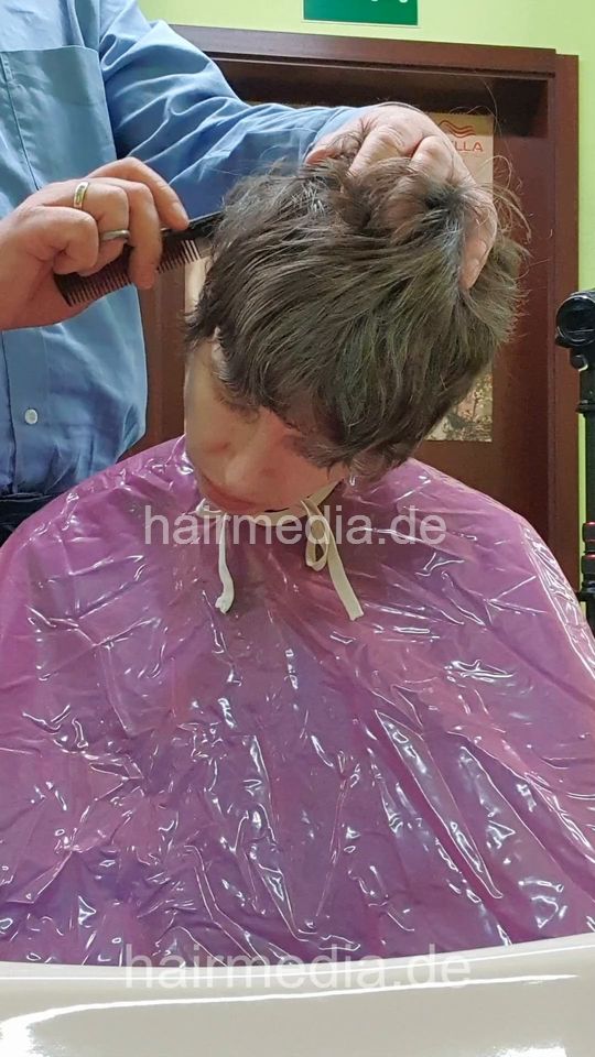1256 CarolaT 2024 session 2 dry haircut by barber, multicaped vertical video