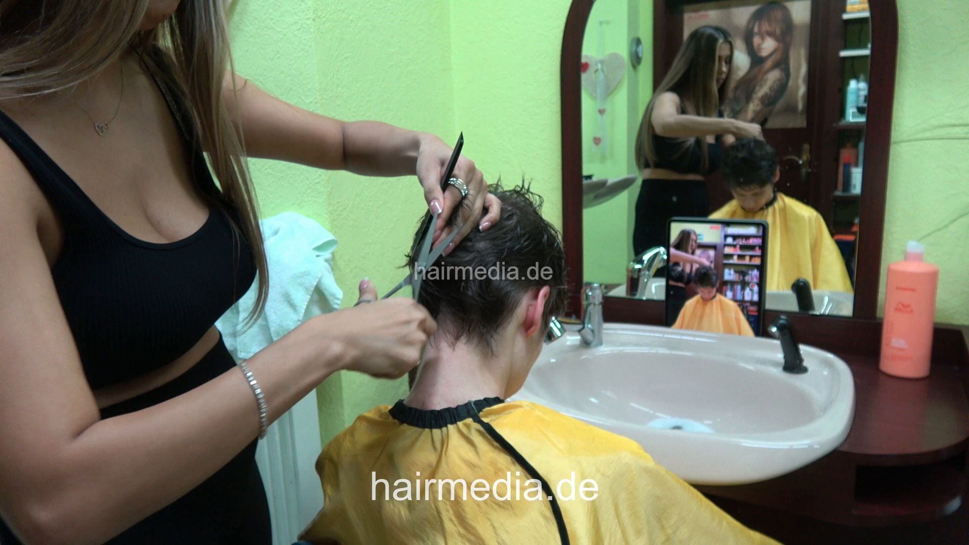 1256 CarolaT 2024 session 6 wet haircut by barberette Zoya, multicaped