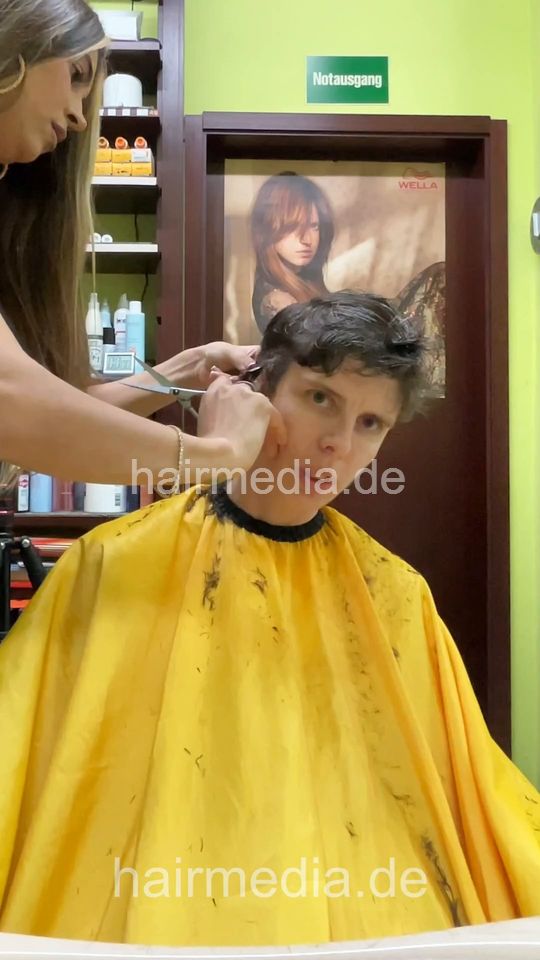 1256 CarolaT 2024 session 6 wet haircut by barberette Zoya, multicaped - vertical video