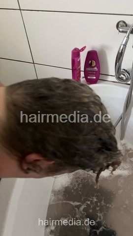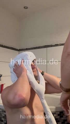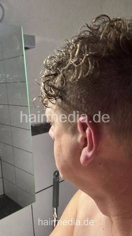 Mike got a shampoo by Yvonne and a bonnet dryer perm styling. Additional bath tub shampooing of Yvonne